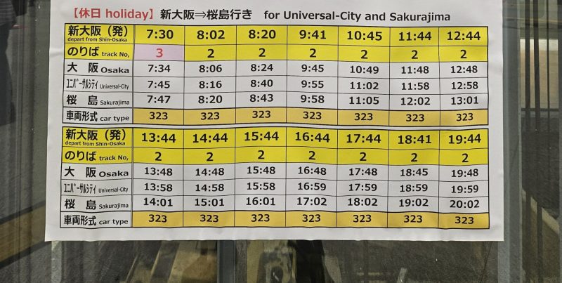 駅の案内によると9:41発のエキスポライナーは新大阪駅2番ホームからの発車らしい。