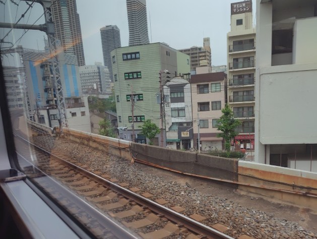 大阪の市街地を走りながら、まず新今宮駅を通過。続いて、今宮駅・芦原橋駅を通過。