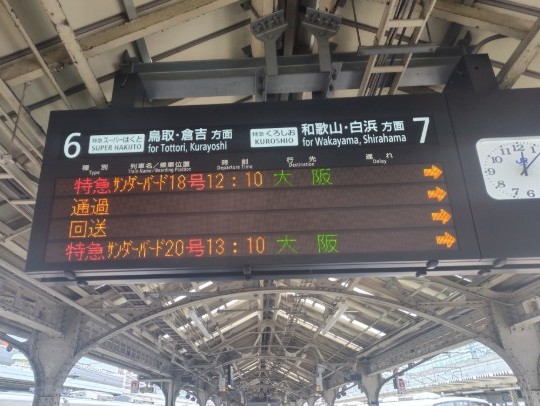 2025年5月26日、JR天王寺駅から特急くろしおの女性専用席に京都まで非協力乗車したあと、京都から大阪まで特急サンダーバードでも非協力乗車しました。