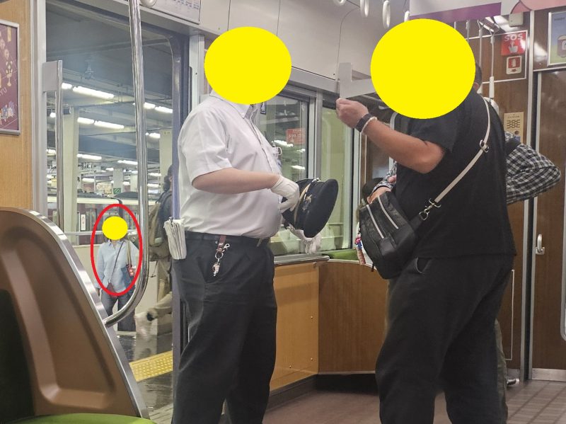 私達にまた「キチガイ」とか「きもっ!」とか何か言ってくるかと思ったが、会員A、Bが駅員に強く抗議している最中だったためか、乗車する際こちらの方をちらっと見たものの、そのまま何も言わず空いた座席に着席。