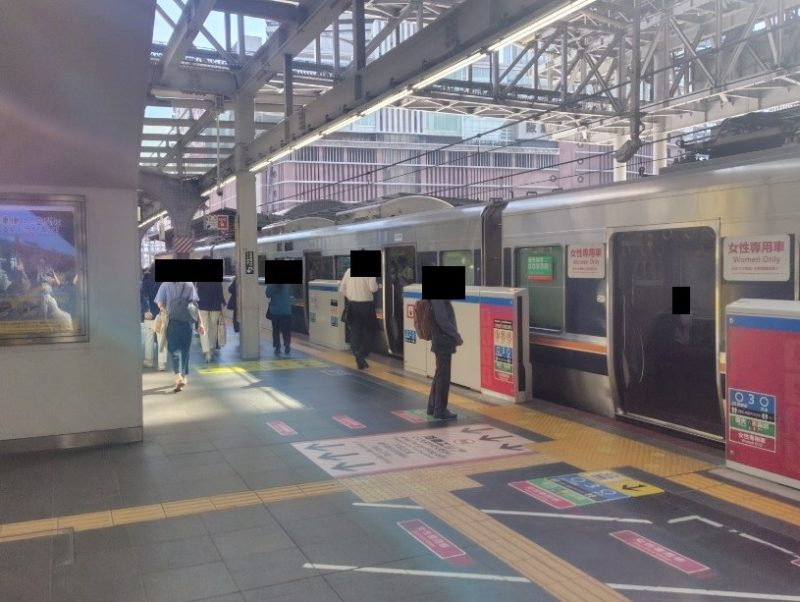 ホームでは駅員が肉声で「この電車の一番前の車両は女性専用車両です。皆様のご理解ご協力をお願いします。」と放送を流していた。