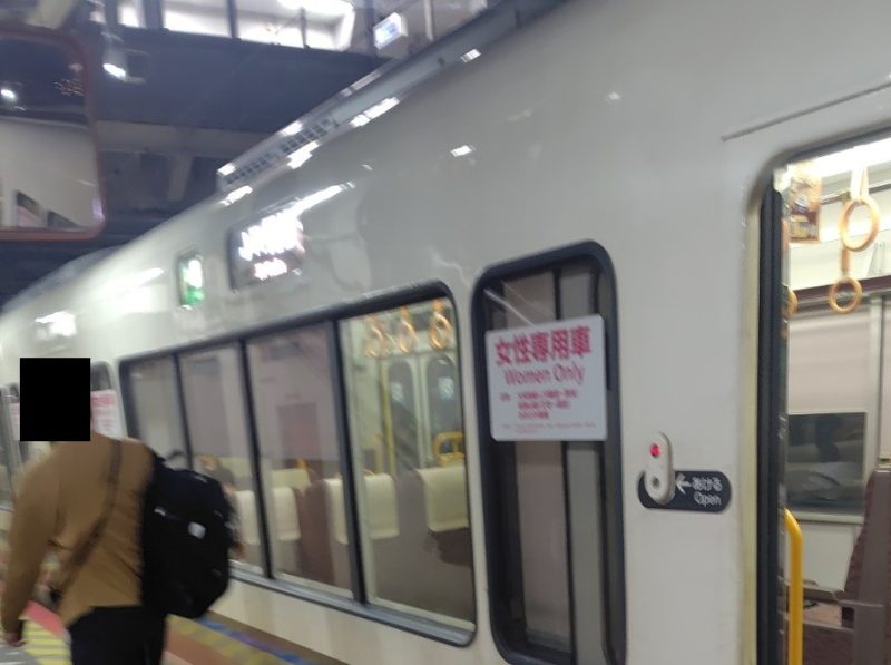 ここで乗車してきた乗客の中に男性客が1人いて、そのまま女性専用車内で着席。もう1人別の男性客も乗車してきたが、こちらはそのまま車内を通り抜けて隣の車両に行ってしまった。