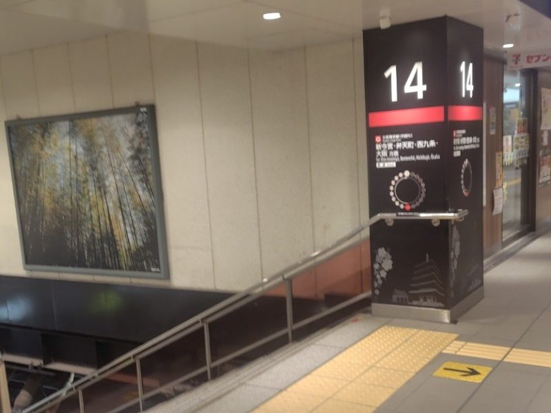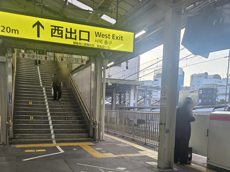 この階段はホーム中程にあり、大阪駅方面からやってきた大阪環状線外回りからの乗り換え客が多数降りてくる、非常に重要度の高い階段である。