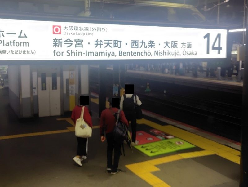 階段を降りてJR大阪環状線外回り普通列車が停まる14番ホームに降り立つと、そこへちょうど天王寺止まりの大阪環状線列車が入ってきて、その女性専用車から降りてくる乗客の中に2人ほどの男性客がいた。