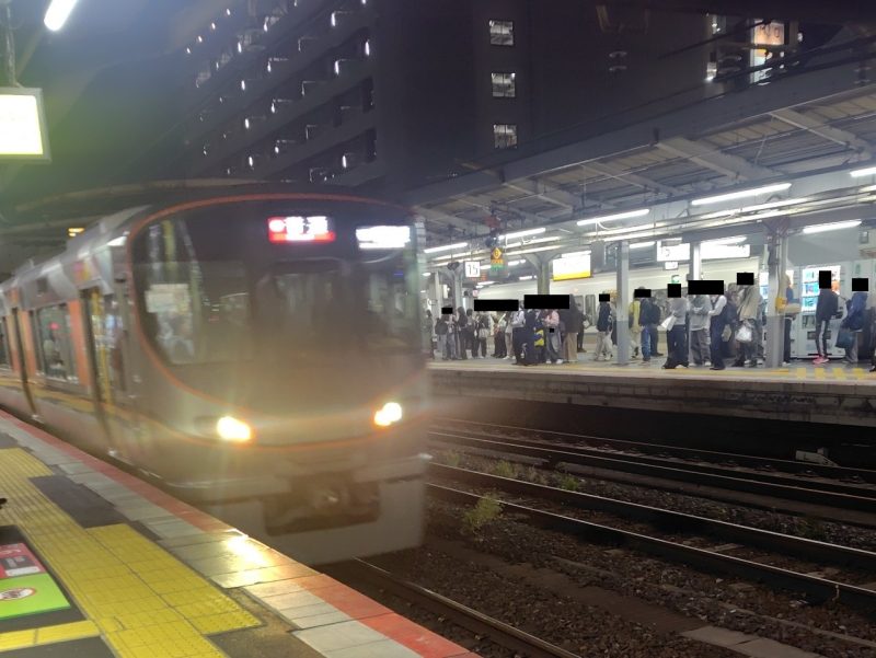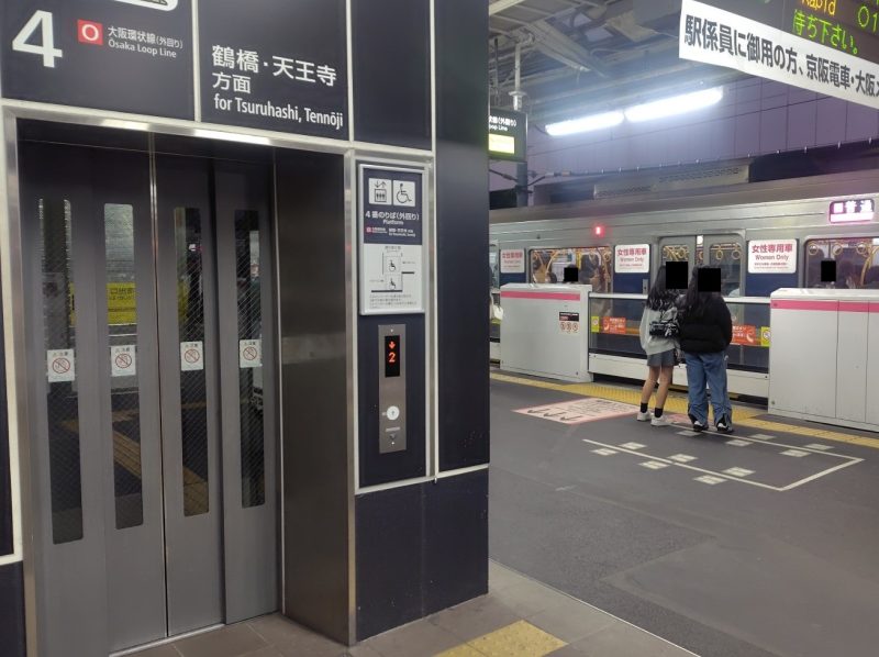 私達はここで大阪環状線に乗り換えるため下車。ホームに降りると女性専用車のすぐ近くに階段があり、女性専用車からだと乗り換えにも非常に便利である。先にも書いたが、JR西日本が『お客様のわかりやすさとご利用の導線(ホームへの階段・通路位置など)を考慮』して女性専用車の位置を決めているからである。