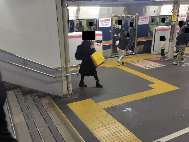 私達の前に夫婦と思われる中年の男女が並んでいたが、女性専用車の表示を見て並んでいたのにわざわざ移動。