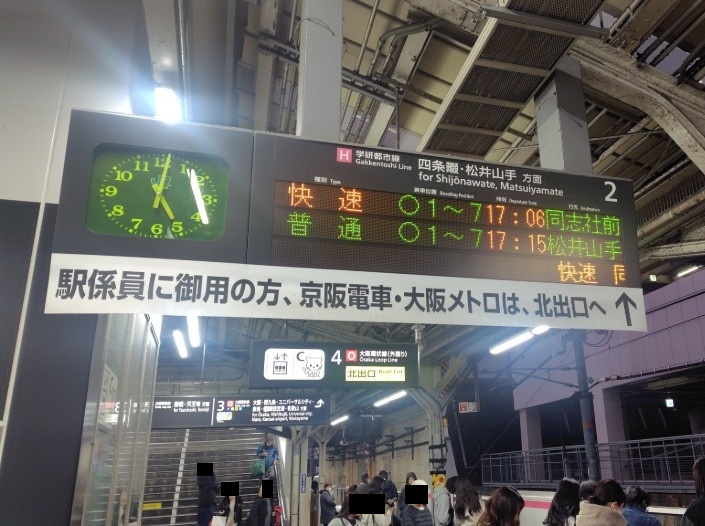 今回は17:10にJR京橋駅の学研都市線ホームに集合。