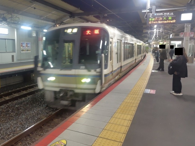 しばらくして17:21発の普通大阪行きが到着。女性専用車に乗車した。
