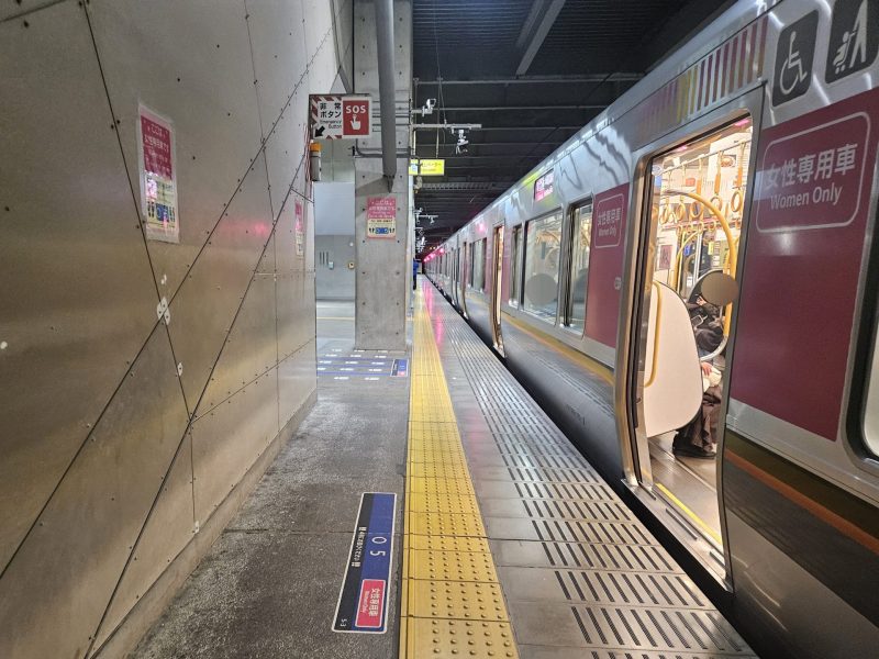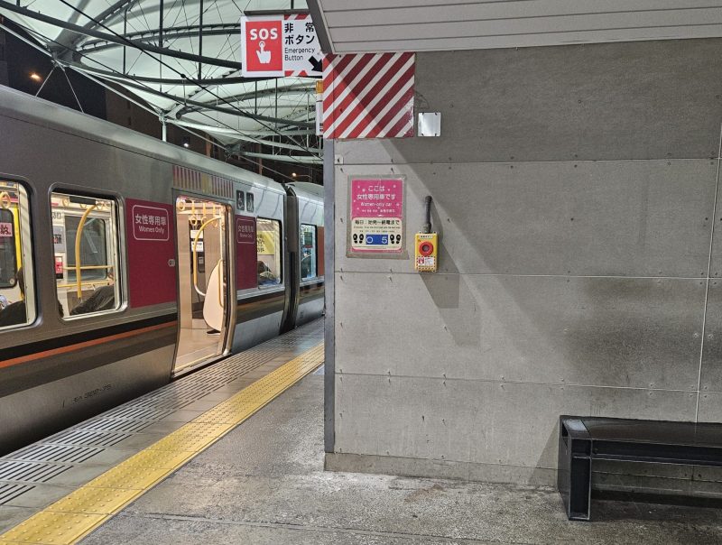 やがて18:23発の大阪環状線方面行が到着すると、ホーム上では女性専用車の位置に並んでいた若い男女や家族連れなどの女性客も含めた男性客がわざわざ隣の車両の列へ移動していたところも目の当たりにした。