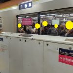 ほどなく列車が到着。車内は立ち客も多いがまだ空いている。見た限り女性ばかりで男性は私達だけのようだ。先ほど小平駅のホームで見送った、女性専用車設定時間前の「乗客の半分くらいが男性」のステッカーつき車両とは対照的である。