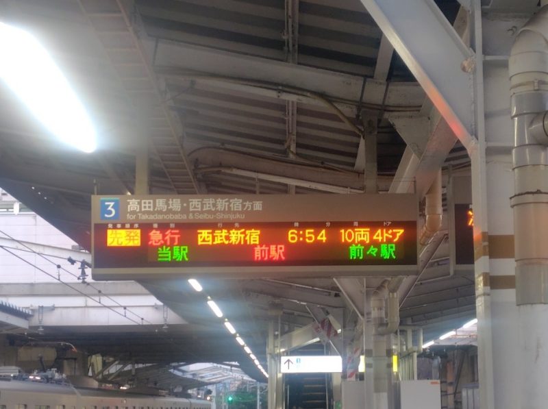 高田馬場駅が近づき、外の風景がよりいっそう都会的になってくると、「まもなく高田馬場に到着いたします」というアナウンスが入った。