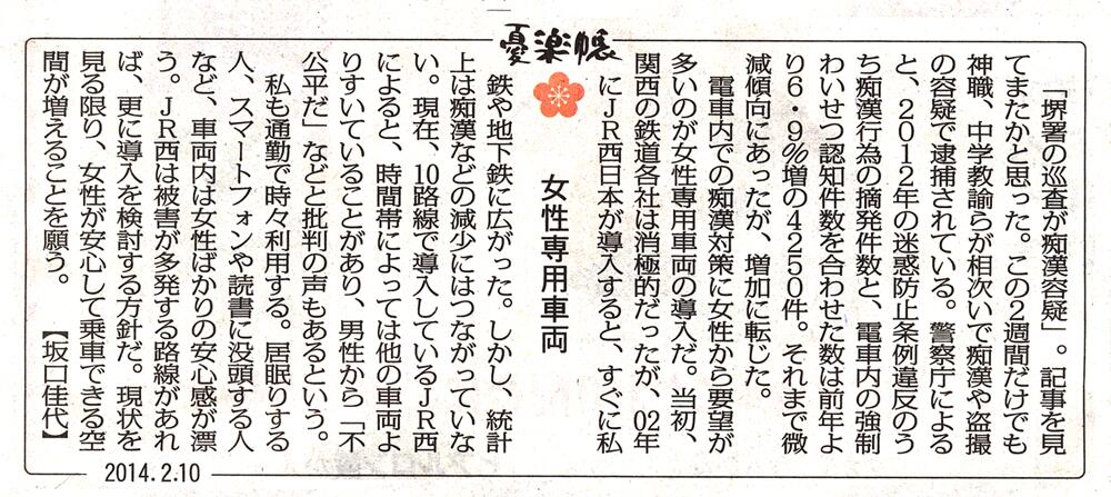 ●はじめまして。女性専用車両について納得がいかない面もあるので意見を記載いたします。